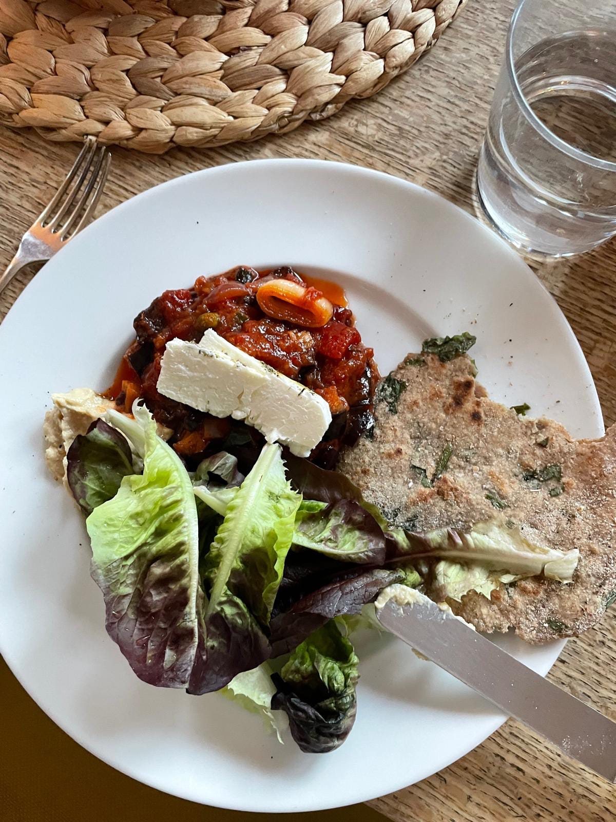 Suggestion to serve with hummus, green salad and unctuous ratatouille or even dip as a snack
